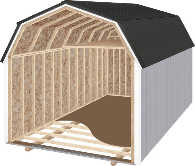 If you need simple outdoor storage space for gardening tools, lawn equipment or other miscellaneous items, then the Non-Lofted Barn might be the right choice. It is tall enough for the average adult to stand in. The Non-Lofted Barn may also serve as a perfect space for a children’s clubhouse. Non-Lofted Barns are ENGINEER CERTIFIED!