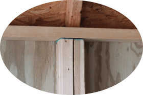We double the wall studs wherever our T1 – 11 siding has a seam, so that both sections o f siding will have a full stud width to be fastened to. This prevents edge tear – outs on the siding and strong adhesion that will stand up to strong winds and years of use.