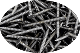 Exposed nails are ring-shanked and galvanized for rust prevention. Ring-shank nails have twice the withdrawal strength of smooth-shank nails. The rings around the nail shank lock into each groove along the shank, resulting in a nail that holds tight despite extreme wind or cyclical moisture conditions.