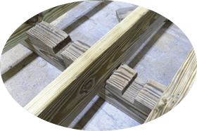 Our 4×6” pressure treaded skids resist rotting and are notched at 12” or 16” on center to ensure consistent floor joist spacing.Recessing and toenailing the joists in the notches lock them in place ensures the shed can be loaded, unloaded, and moved repeatedly withoutany warping or racking of the floor system.