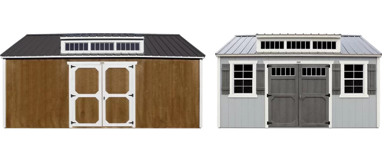 The Lofted Barn option includes loft decking above the porch area for added storage while the Utility Shed option includes 8ft walls, creating added vertical space for shelves or other types of storage.