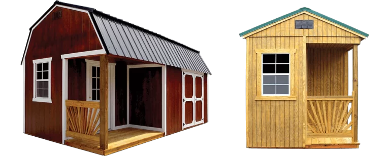 The Lofted Barn option includes loft decking above the porch area for added storage while the Utility Shed option includes 8ft walls, creating added vertical space for shelves or other types of storage. The Side Porch package can be applied to any corner of your building.