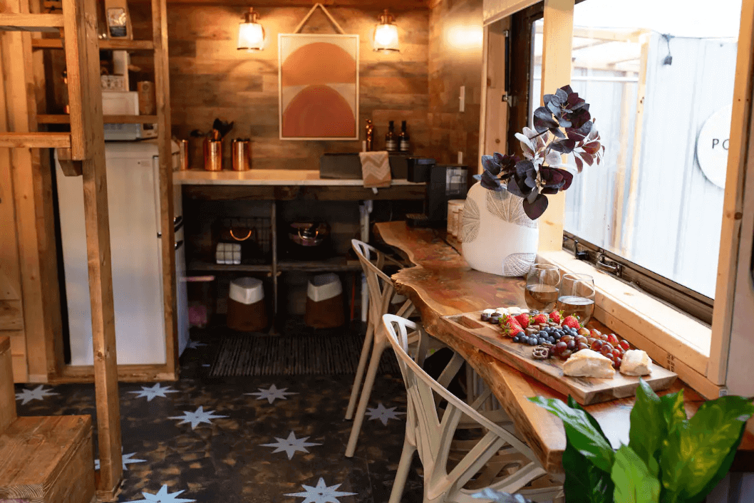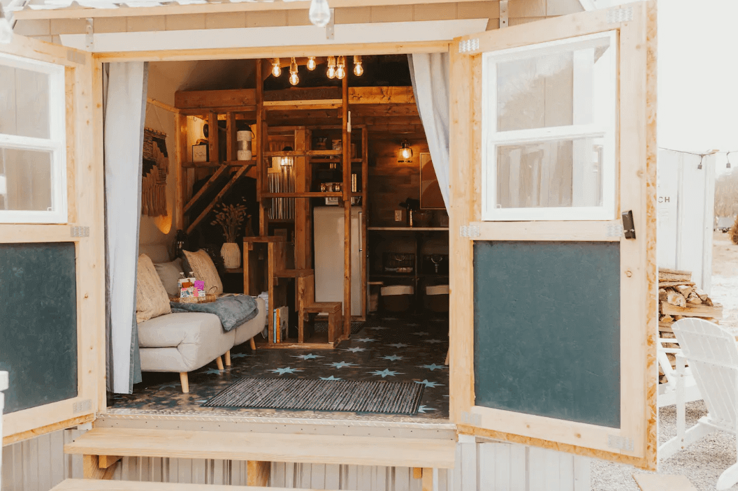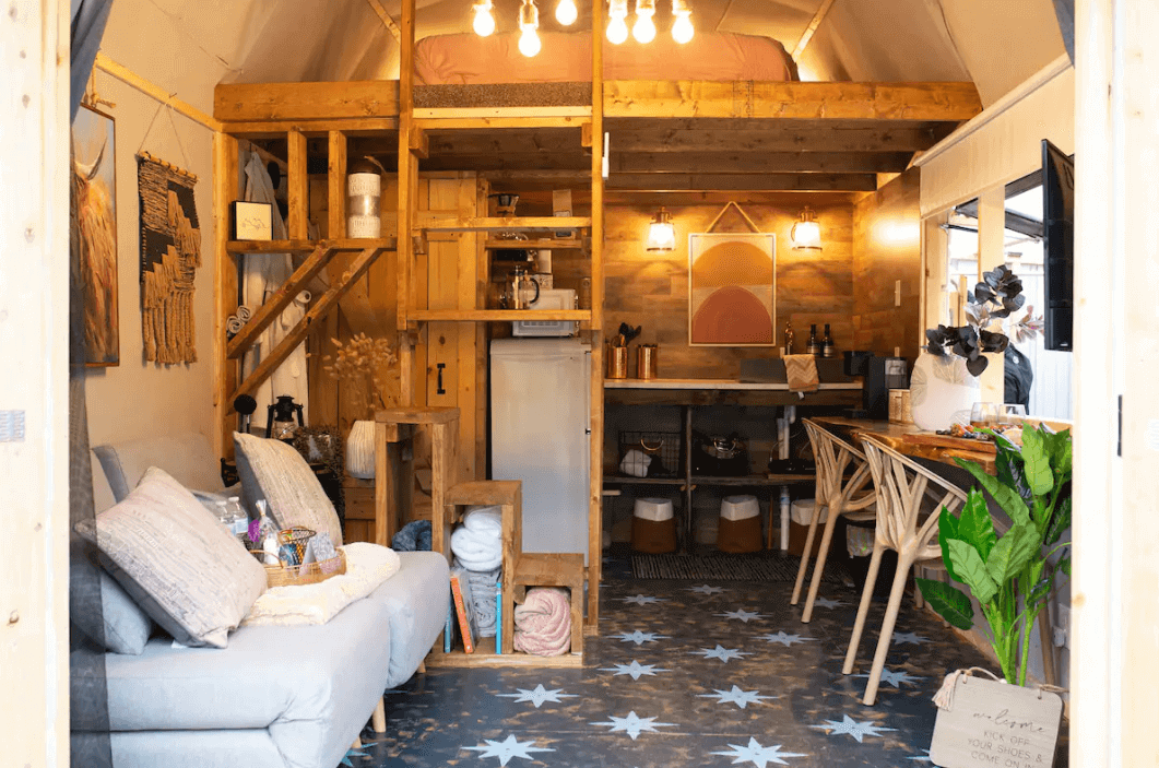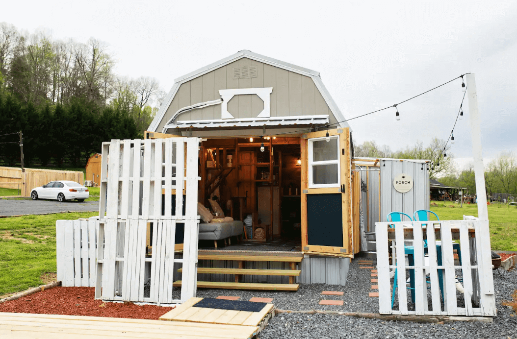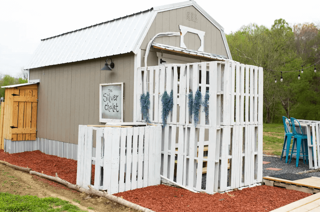 Get into this glamping experience with a customer’s romantic stay lodge in East Tennessee. Our friends over at The English Creek Hideaway have transformed our LOFTED BARN into a cottage-styled chalet where guests are cozy, comfortable, and immersed in the nature surrounding it. The featured customization and intricate details of this barn goes beyond our wildest dreams!