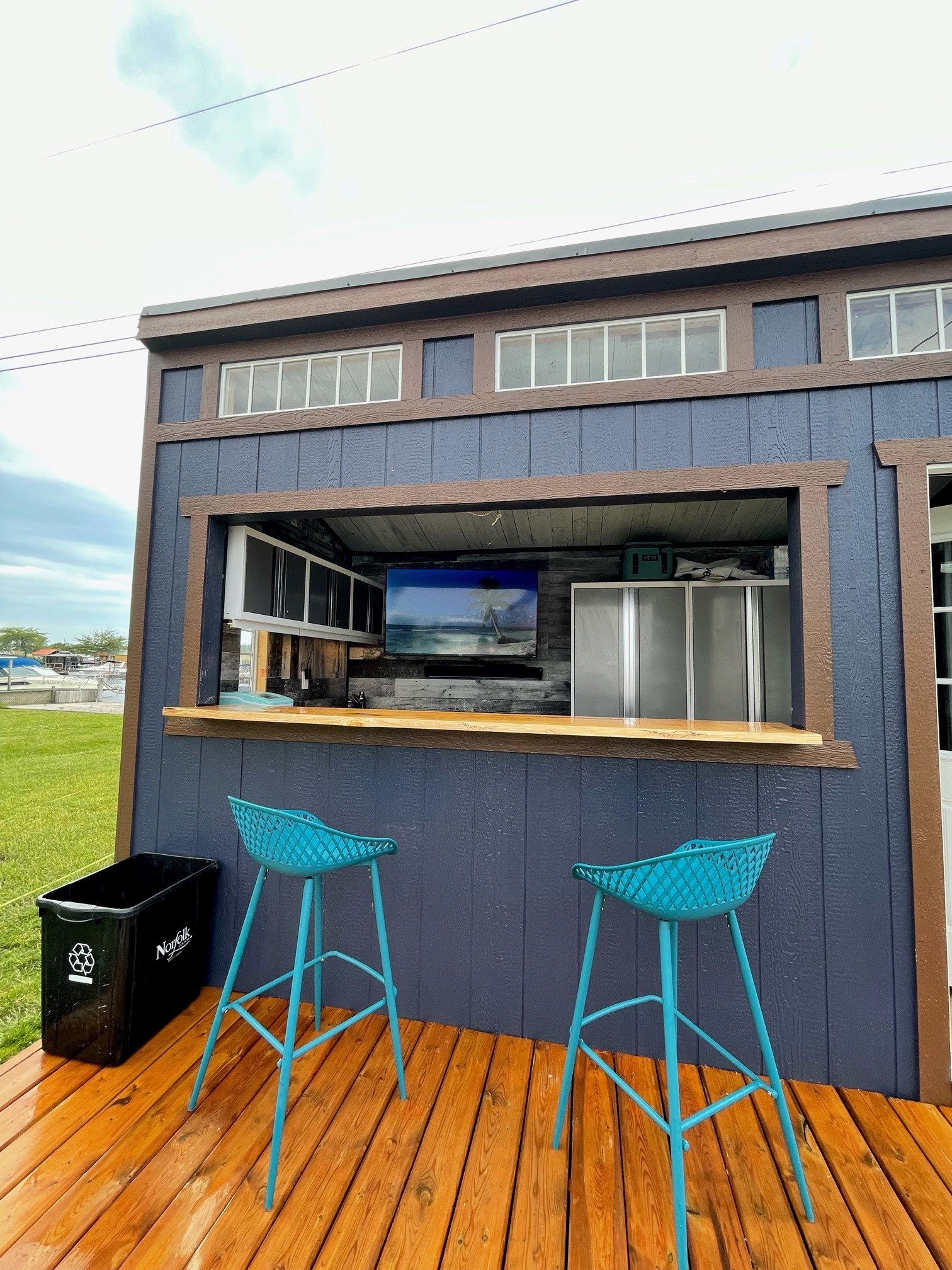 The Single Slope Shed comes in handy when you have a storage need but the shed location backs up to a property edge, trees, a fence, or other obstruction that will limit the location of the entrance to the front. Customize this building with more windows on the sides to brighten and open the space a bit more.